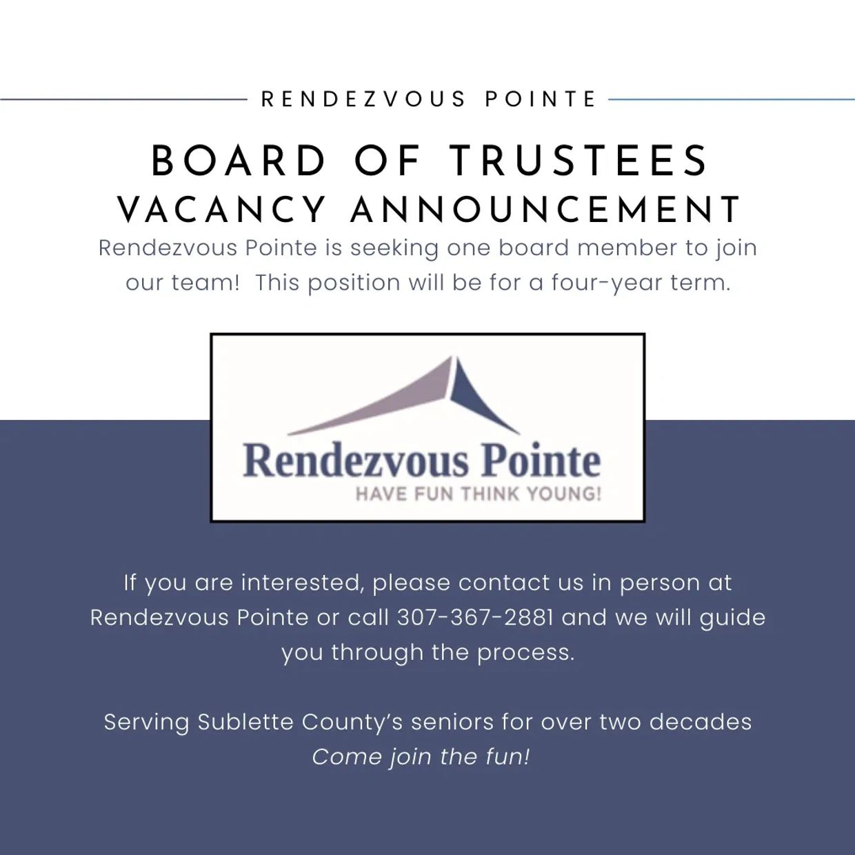 Rendezvous Pointe is a non-profit senior and community center located in Pinedale, WY. We are committed to keeping seniors and the disabled in our community healthy, active, self-reliant and able to live in their own homes or independently.